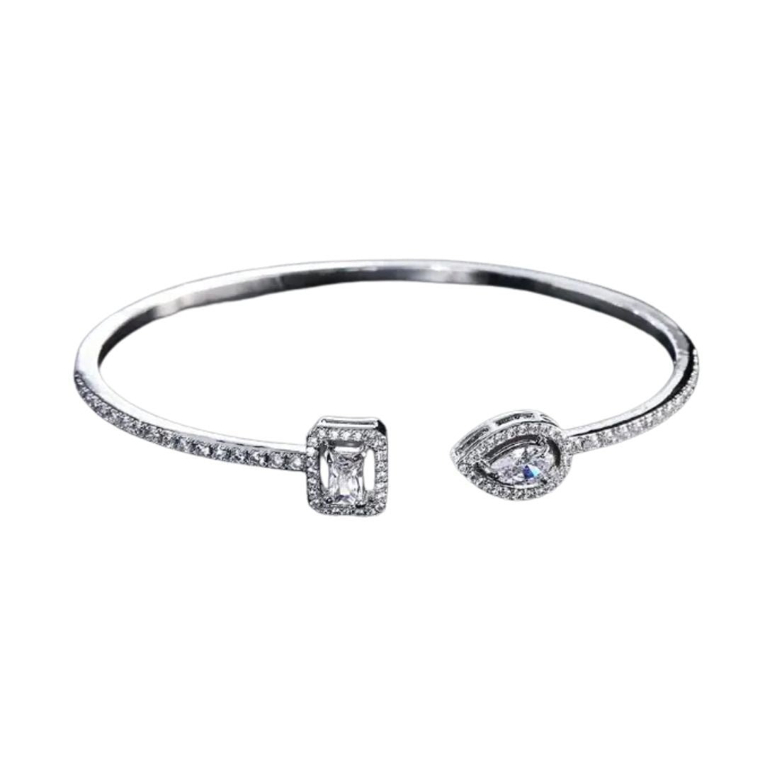 Light up every moment with the brilliance of this Radiant Dual-Cut Zircon Bracelet. Designed with a minimalist open style, it features two striking zircon cuts, a classic emerald shape and a graceful teardrop, both glowing with unmatched sparkle.